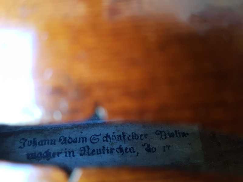 Barockvioline mit Etikett Johann Adam Schönfelder 1 Barockvioline mit Etikett Johann Adam Schönfelder 1 Barockvioline mit Etikett Johann Adam Schönfelder 1